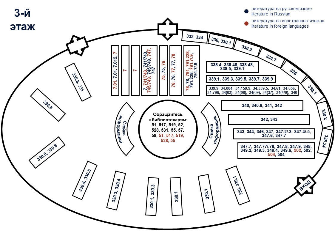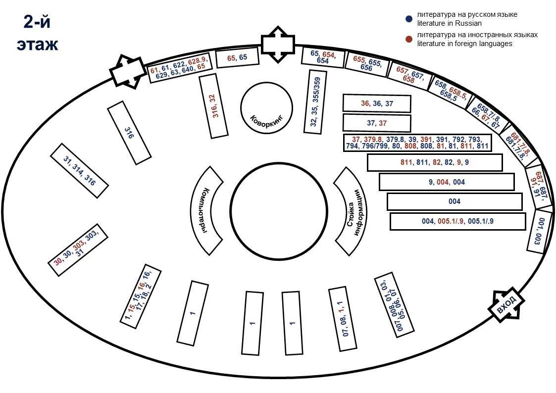 Воспользуйтесь схемой, чтобы найти нужную вам книгу в читальных залах.